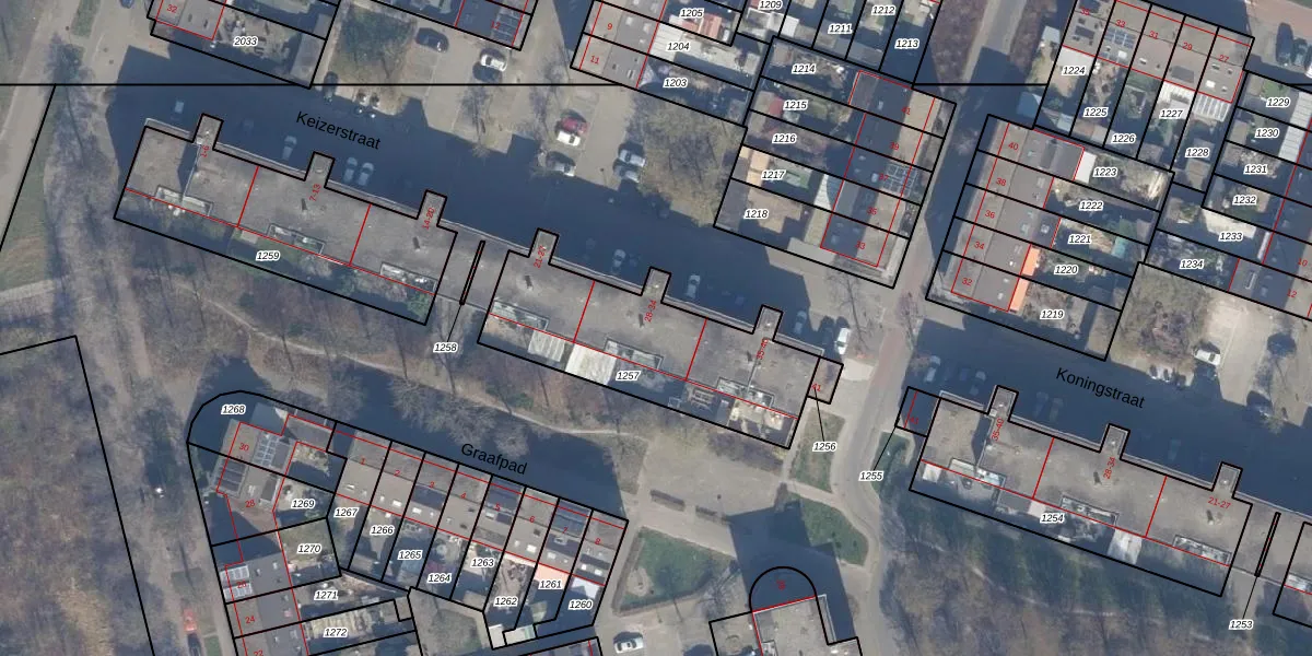 Het perceel waarop Keizerstraat 30 staat heeft een oppervlakte van 789 m². Dit is een groot perceel. De perceeloppervlakte wordt geregistreerd door het Kadaster. Gedetailleerde informatie over de maten van dit perceel kunt u vinden in het rapport Kadastrale kaart met maatvoering van Keizerstraat 30.