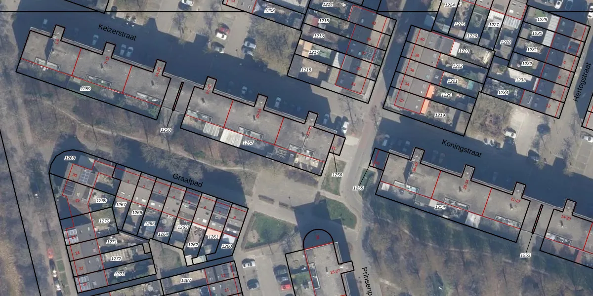 Het perceel waarop Keizerstraat 39 staat heeft een oppervlakte van 789 m². Dit is een groot perceel. De perceeloppervlakte wordt geregistreerd door het Kadaster. Gedetailleerde informatie over de maten van dit perceel kunt u vinden in het rapport Kadastrale kaart met maatvoering van Keizerstraat 39.