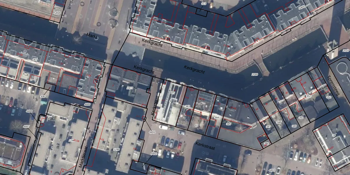 Het perceel waarop Kerkgracht 4 staat heeft een oppervlakte van 336 m². Dit is een groot perceel. De perceeloppervlakte wordt geregistreerd door het Kadaster. Gedetailleerde informatie over de maten van dit perceel kunt u vinden in het rapport Kadastrale kaart met maatvoering van Kerkgracht 4.