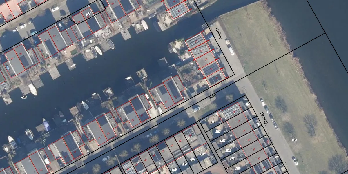 Het perceel waarop Kiel 31 staat heeft een oppervlakte van 1,7 ha. Dit is een zeer groot perceel. De perceeloppervlakte wordt geregistreerd door het Kadaster. Gedetailleerde informatie over de maten van dit perceel kunt u vinden in het rapport Kadastrale kaart met maatvoering van Kiel 31.
