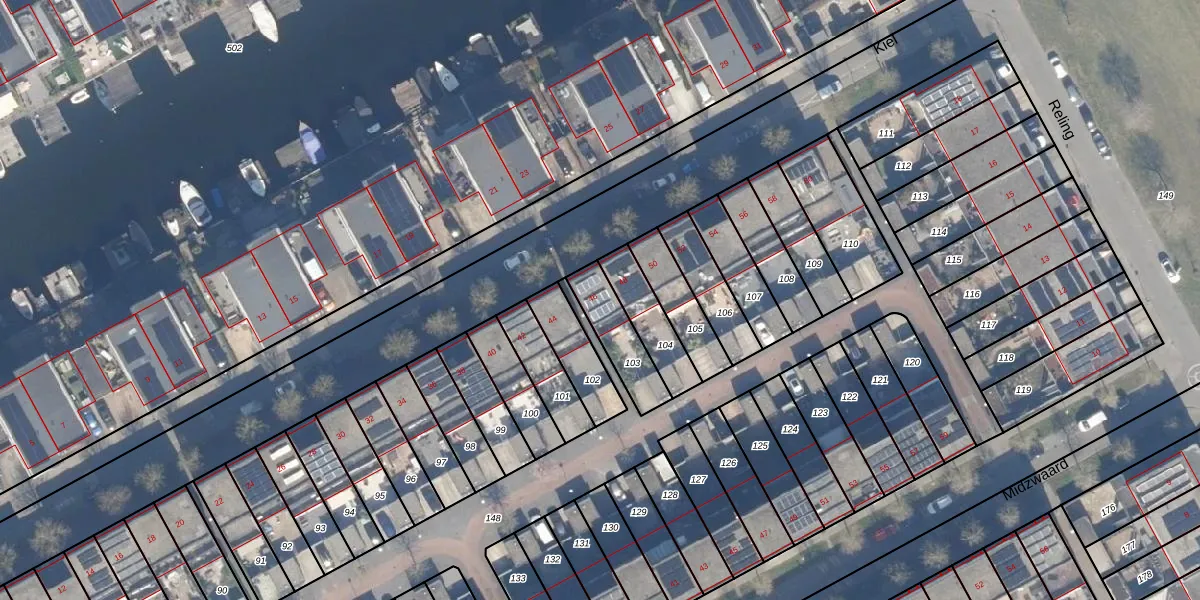 Gebruik de zoekbalk of klik op een perceel voor informatie over de adressen binnen dit perceel.