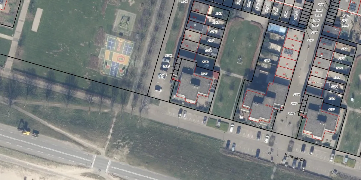 Het perceel waarop Kimwierde 105 staat heeft een oppervlakte van 553 m². Dit is een groot perceel. De perceeloppervlakte wordt geregistreerd door het Kadaster. Gedetailleerde informatie over de maten van dit perceel kunt u vinden in het rapport Kadastrale kaart met maatvoering van Kimwierde 105.