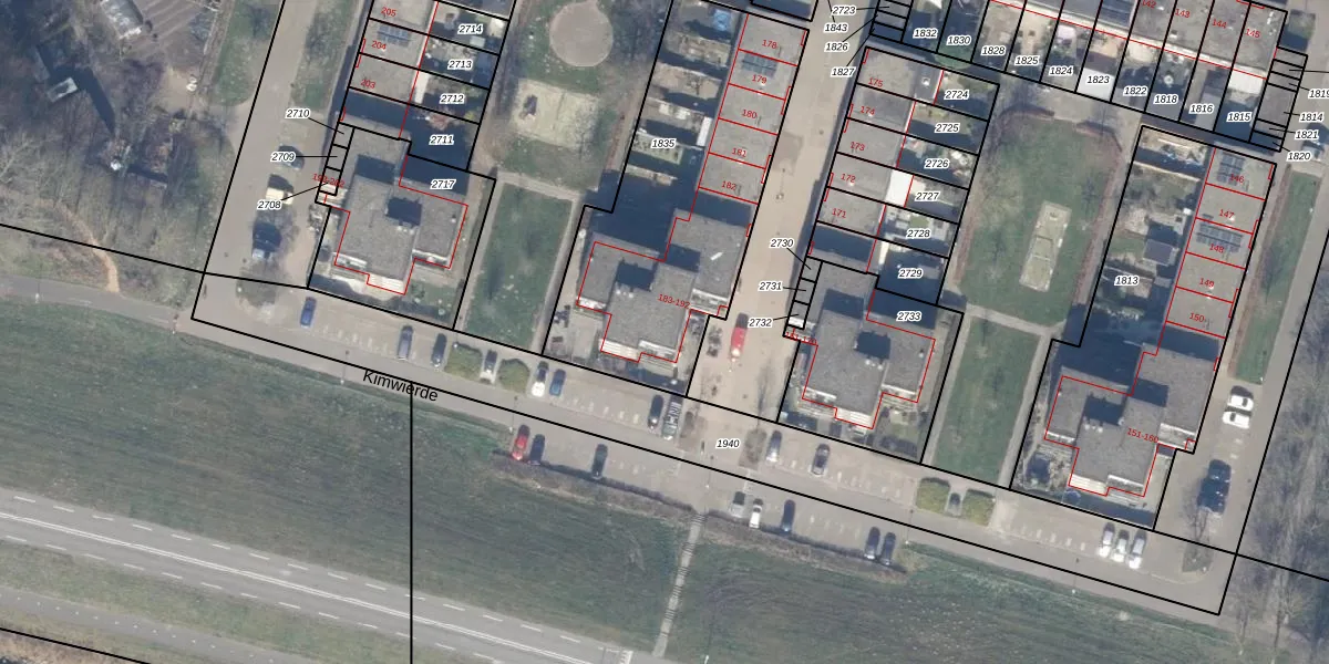 Het perceel waarop Kimwierde 191 staat heeft een oppervlakte van 1285 m². Dit is een zeer groot perceel. De perceeloppervlakte wordt geregistreerd door het Kadaster. Gedetailleerde informatie over de maten van dit perceel kunt u vinden in het rapport Kadastrale kaart met maatvoering van Kimwierde 191.