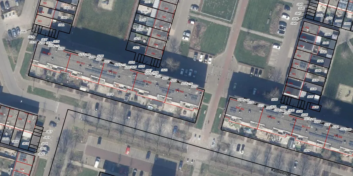 Het perceel waarop Kimwierde 338 staat heeft een oppervlakte van 1932 m². Dit is een zeer groot perceel. De perceeloppervlakte wordt geregistreerd door het Kadaster. Gedetailleerde informatie over de maten van dit perceel kunt u vinden in het rapport Kadastrale kaart met maatvoering van Kimwierde 338.