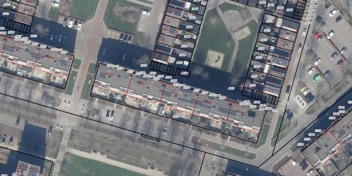 Het perceel waarop Kimwierde 367 staat heeft een oppervlakte van 1884 m². Dit is een zeer groot perceel. De perceeloppervlakte wordt geregistreerd door het Kadaster. Gedetailleerde informatie over de maten van dit perceel kunt u vinden in het rapport Kadastrale kaart met maatvoering van Kimwierde 367.
