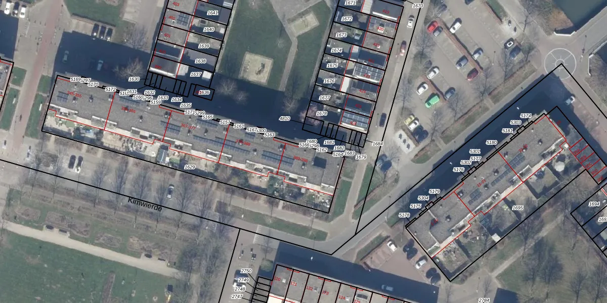 Het perceel waarop Kimwierde 389 staat heeft een oppervlakte van 1884 m². Dit is een zeer groot perceel. De perceeloppervlakte wordt geregistreerd door het Kadaster. Gedetailleerde informatie over de maten van dit perceel kunt u vinden in het rapport Kadastrale kaart met maatvoering van Kimwierde 389.