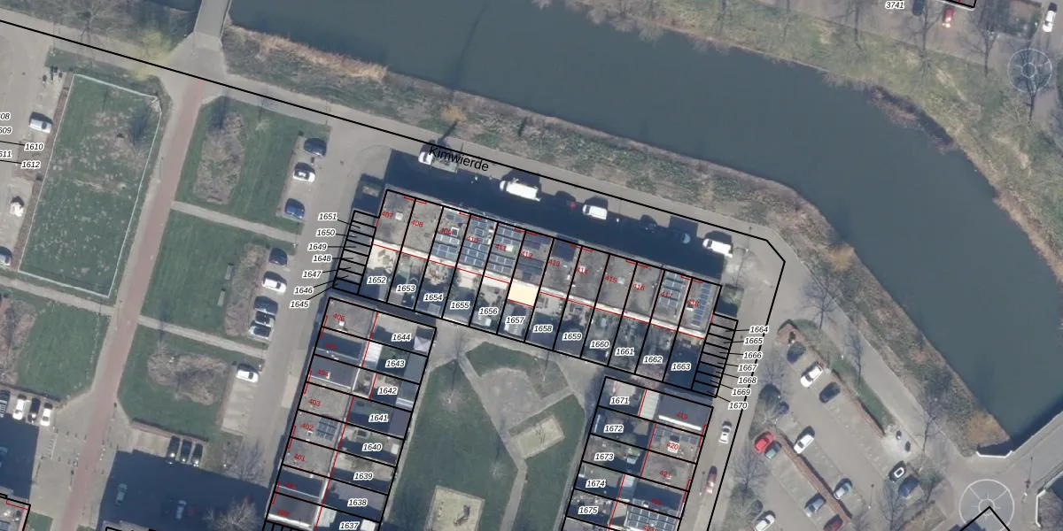 Kimwierde 412 is gelegen op kadastraal perceel AMR04H1657. Deze kadastrale aanduiding is uniek en wordt gebruikt door het Kadaster om eigendomsrechten en andere zakelijke rechten vast te leggen. Het perceel maakt onderdeel uit van de kadastrale gemeente Almere.