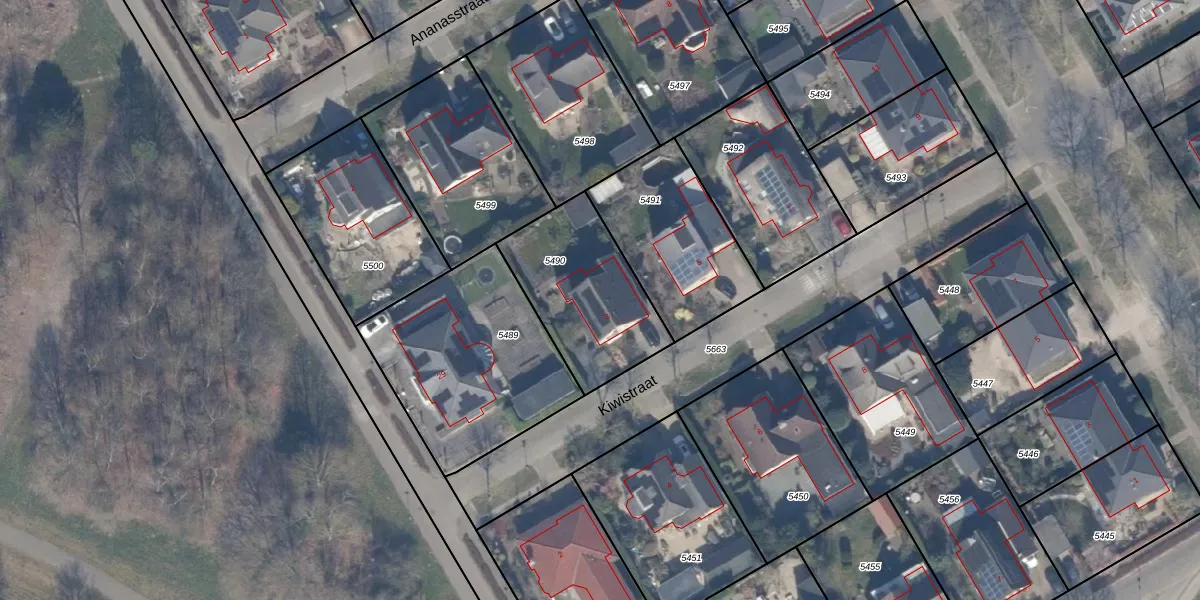 Het perceel waarop Kiwistraat 3 staat heeft een oppervlakte van 510 m². Dit is een groot perceel. De perceeloppervlakte wordt geregistreerd door het Kadaster. Gedetailleerde informatie over de maten van dit perceel kunt u vinden in het rapport Kadastrale kaart met maatvoering van Kiwistraat 3.
