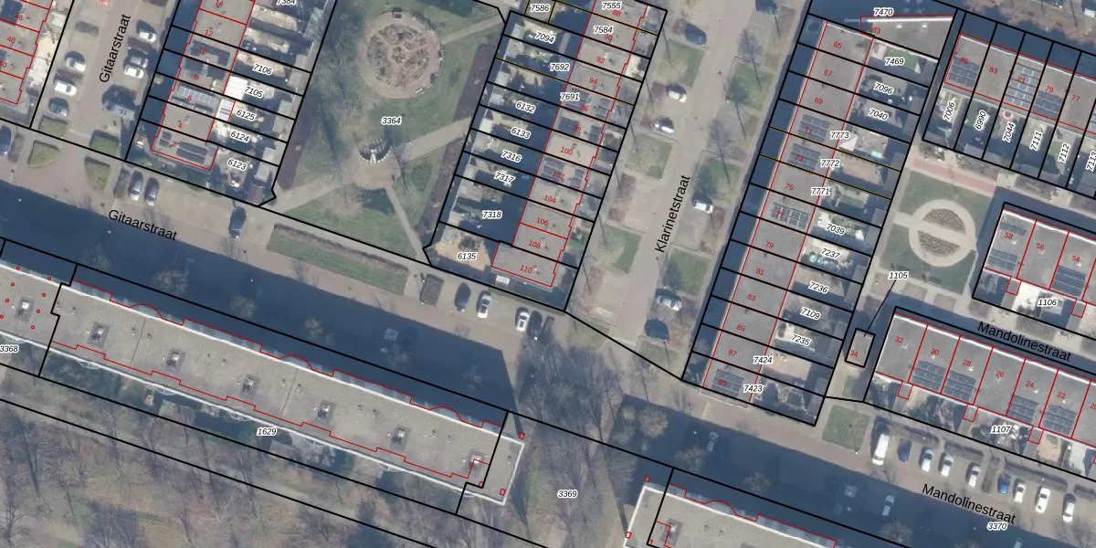 Het perceel waarop Klarinetstraat 110 staat heeft een oppervlakte van 222 m². Dit is een middelgroot perceel. De perceeloppervlakte wordt geregistreerd door het Kadaster. Gedetailleerde informatie over de maten van dit perceel kunt u vinden in het rapport Kadastrale kaart met maatvoering van Klarinetstraat 110.