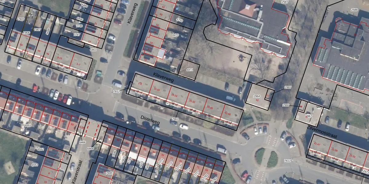 Klaverweg 24 is gelegen op kadastraal perceel AMR04O2963. Deze kadastrale aanduiding is uniek en wordt gebruikt door het Kadaster om eigendomsrechten en andere zakelijke rechten vast te leggen. Het perceel maakt onderdeel uit van de kadastrale gemeente Almere.