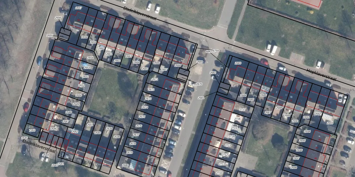 Gebruik de zoekbalk of klik op een perceel voor informatie over de adressen binnen dit perceel.