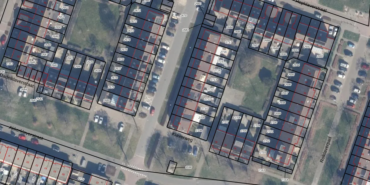 Gebruik de zoekbalk of klik op een perceel voor informatie over de adressen binnen dit perceel.