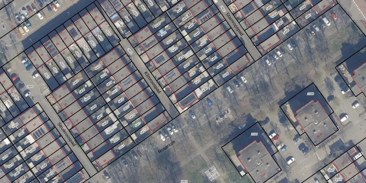 Gebruik de zoekbalk of klik op een perceel voor informatie over de adressen binnen dit perceel.