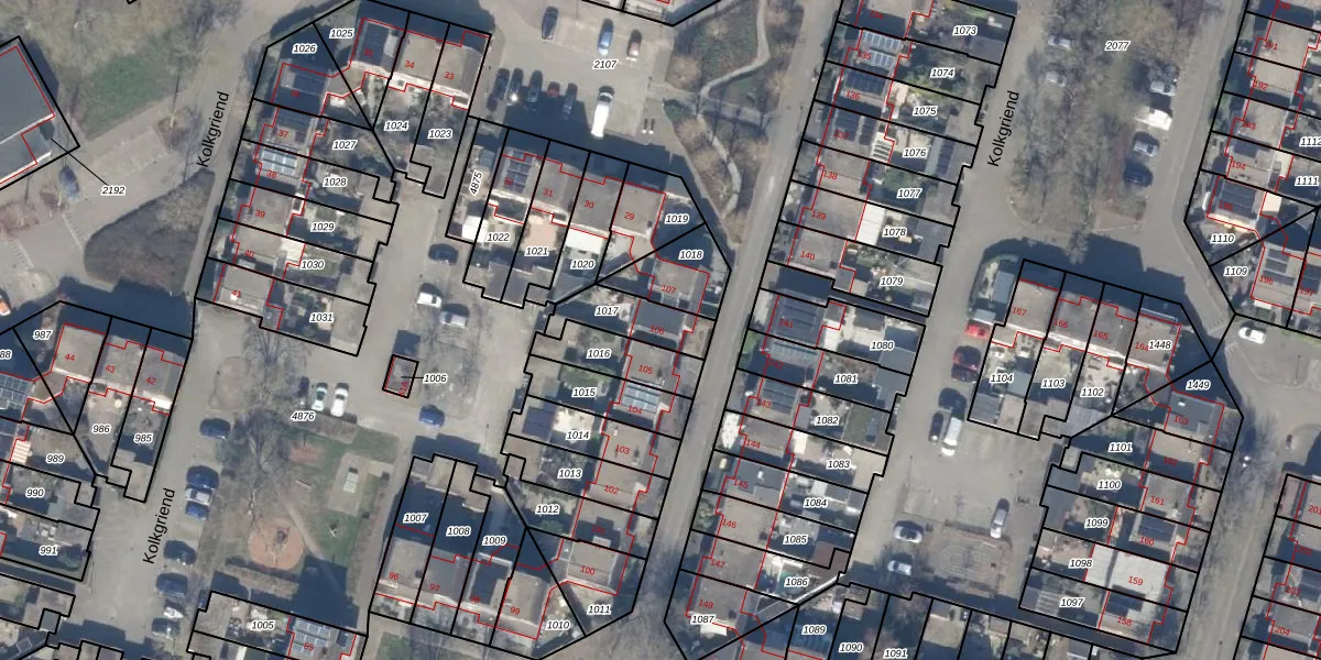 Kolkgriend 106 is gelegen op kadastraal perceel AMR04H1017. Deze kadastrale aanduiding is uniek en wordt gebruikt door het Kadaster om eigendomsrechten en andere zakelijke rechten vast te leggen. Het perceel maakt onderdeel uit van de kadastrale gemeente Almere.