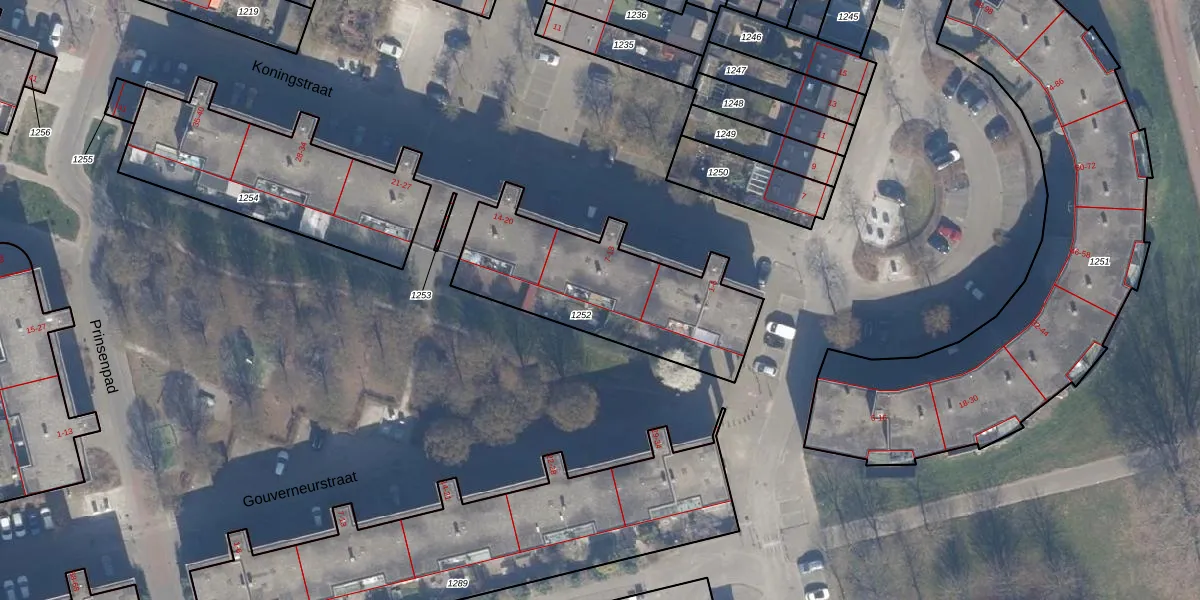 Het perceel waarop Koningstraat 12 staat heeft een oppervlakte van 786 m². Dit is een groot perceel. De perceeloppervlakte wordt geregistreerd door het Kadaster. Gedetailleerde informatie over de maten van dit perceel kunt u vinden in het rapport Kadastrale kaart met maatvoering van Koningstraat 12.
