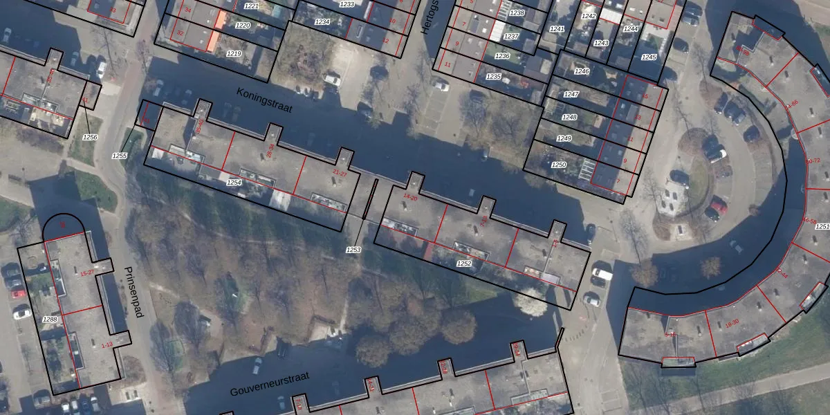 Het perceel waarop Koningstraat 15 staat heeft een oppervlakte van 786 m². Dit is een groot perceel. De perceeloppervlakte wordt geregistreerd door het Kadaster. Gedetailleerde informatie over de maten van dit perceel kunt u vinden in het rapport Kadastrale kaart met maatvoering van Koningstraat 15.