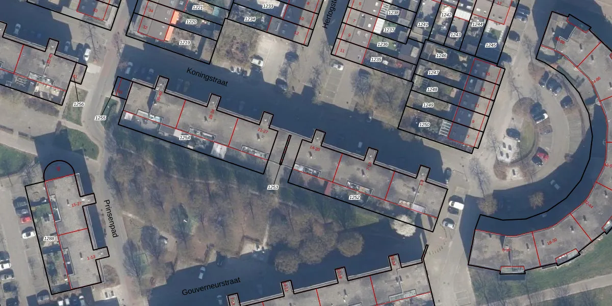 Het perceel waarop Koningstraat 16 staat heeft een oppervlakte van 786 m². Dit is een groot perceel. De perceeloppervlakte wordt geregistreerd door het Kadaster. Gedetailleerde informatie over de maten van dit perceel kunt u vinden in het rapport Kadastrale kaart met maatvoering van Koningstraat 16.