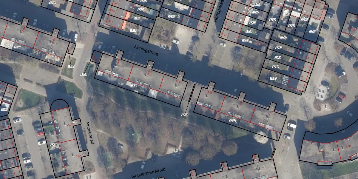 Het perceel waarop Koningstraat 24 staat heeft een oppervlakte van 788 m². Dit is een groot perceel. De perceeloppervlakte wordt geregistreerd door het Kadaster. Gedetailleerde informatie over de maten van dit perceel kunt u vinden in het rapport Kadastrale kaart met maatvoering van Koningstraat 24.