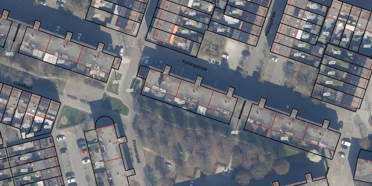 Het perceel waarop Koningstraat 32 staat heeft een oppervlakte van 788 m². Dit is een groot perceel. De perceeloppervlakte wordt geregistreerd door het Kadaster. Gedetailleerde informatie over de maten van dit perceel kunt u vinden in het rapport Kadastrale kaart met maatvoering van Koningstraat 32.