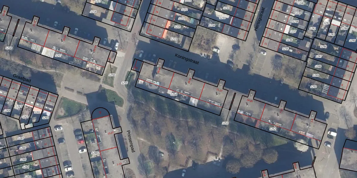 Het perceel waarop Koningstraat 34 staat heeft een oppervlakte van 788 m². Dit is een groot perceel. De perceeloppervlakte wordt geregistreerd door het Kadaster. Gedetailleerde informatie over de maten van dit perceel kunt u vinden in het rapport Kadastrale kaart met maatvoering van Koningstraat 34.