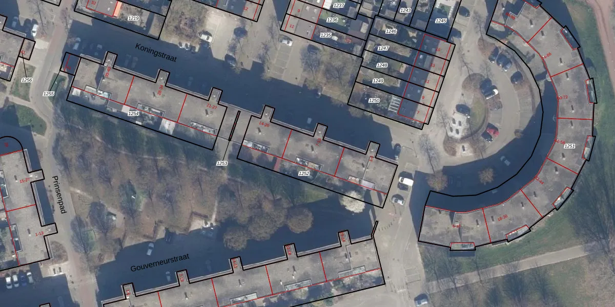 Het perceel waarop Koningstraat 9 staat heeft een oppervlakte van 786 m². Dit is een groot perceel. De perceeloppervlakte wordt geregistreerd door het Kadaster. Gedetailleerde informatie over de maten van dit perceel kunt u vinden in het rapport Kadastrale kaart met maatvoering van Koningstraat 9.