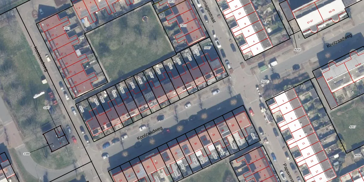Gebruik de zoekbalk of klik op een perceel voor informatie over de adressen binnen dit perceel.