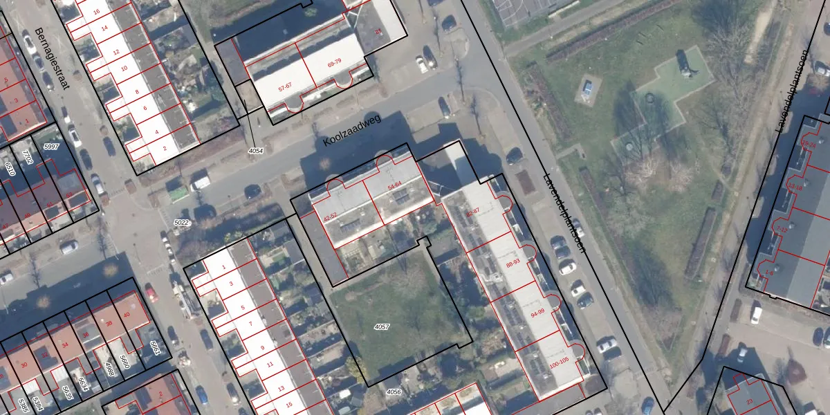 Koolzaadweg 62 is gelegen op kadastraal perceel AMR04O4056. Deze kadastrale aanduiding is uniek en wordt gebruikt door het Kadaster om eigendomsrechten en andere zakelijke rechten vast te leggen. Het perceel maakt onderdeel uit van de kadastrale gemeente Almere.