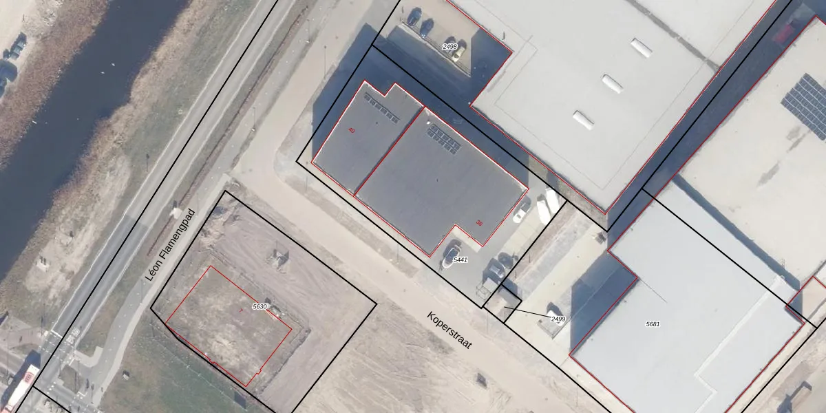 Het perceel waarop Koperstraat 38 staat heeft een oppervlakte van 1974 m². Dit is een zeer groot perceel. De perceeloppervlakte wordt geregistreerd door het Kadaster. Gedetailleerde informatie over de maten van dit perceel kunt u vinden in het rapport Kadastrale kaart met maatvoering van Koperstraat 38.