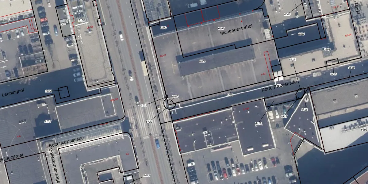 Het perceel waarop Korte Promenade 1 staat heeft een oppervlakte van 1706 m². Dit is een zeer groot perceel. De perceeloppervlakte wordt geregistreerd door het Kadaster. Gedetailleerde informatie over de maten van dit perceel kunt u vinden in het rapport Kadastrale kaart met maatvoering van Korte Promenade 1.