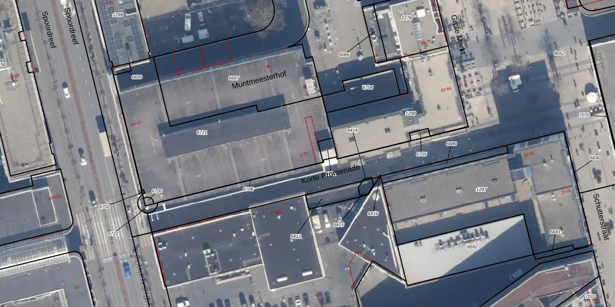 Het perceel waarop Korte Promenade 15 staat heeft een oppervlakte van 1706 m². Dit is een zeer groot perceel. De perceeloppervlakte wordt geregistreerd door het Kadaster. Gedetailleerde informatie over de maten van dit perceel kunt u vinden in het rapport Kadastrale kaart met maatvoering van Korte Promenade 15.