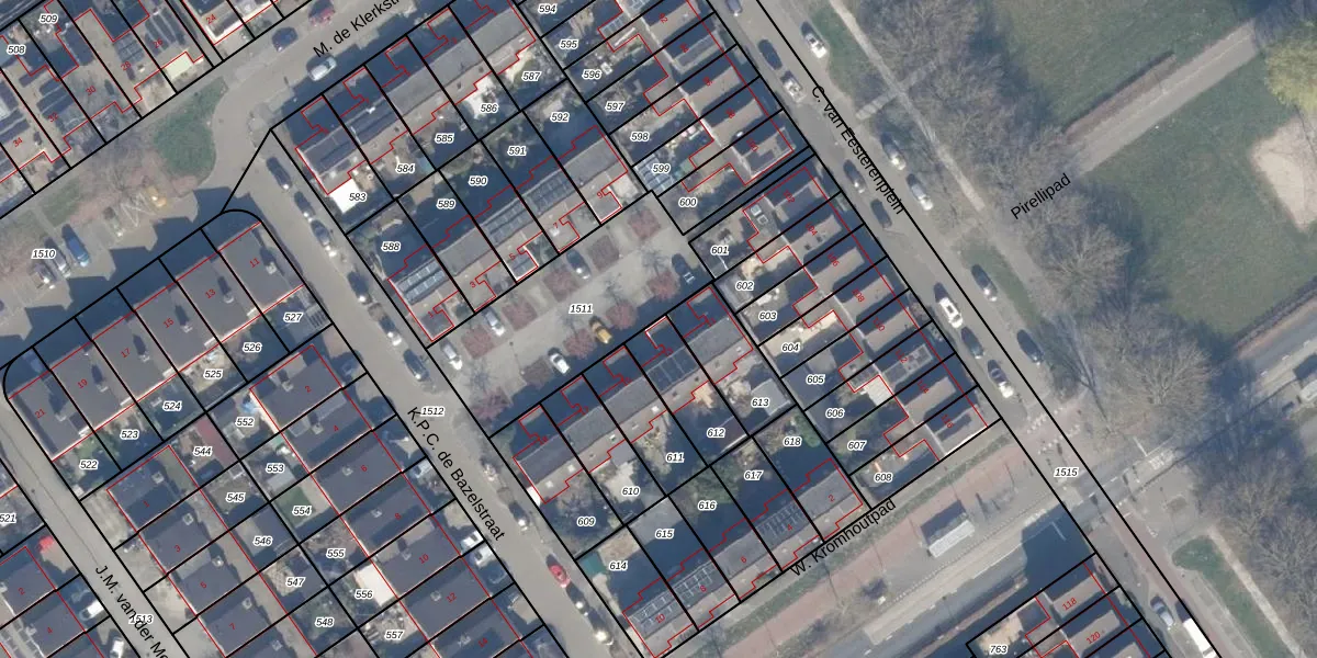 Het perceel waarop K.P.C. de Bazelstraat 13 staat heeft een oppervlakte van 177 m². Dit is een middelgroot perceel. De perceeloppervlakte wordt geregistreerd door het Kadaster. Gedetailleerde informatie over de maten van dit perceel kunt u vinden in het rapport Kadastrale kaart met maatvoering van K.P.C. de Bazelstraat 13.