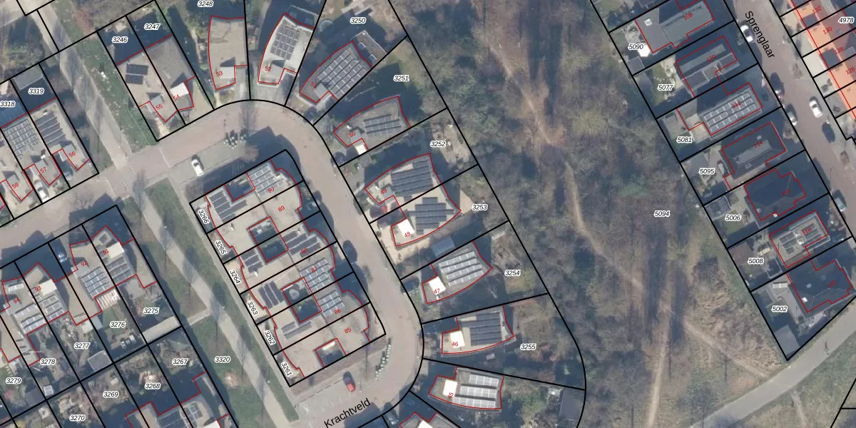 Het perceel waarop Krachtveld 48 staat heeft een oppervlakte van 436 m². Dit is een groot perceel. De perceeloppervlakte wordt geregistreerd door het Kadaster. Gedetailleerde informatie over de maten van dit perceel kunt u vinden in het rapport Kadastrale kaart met maatvoering van Krachtveld 48.
