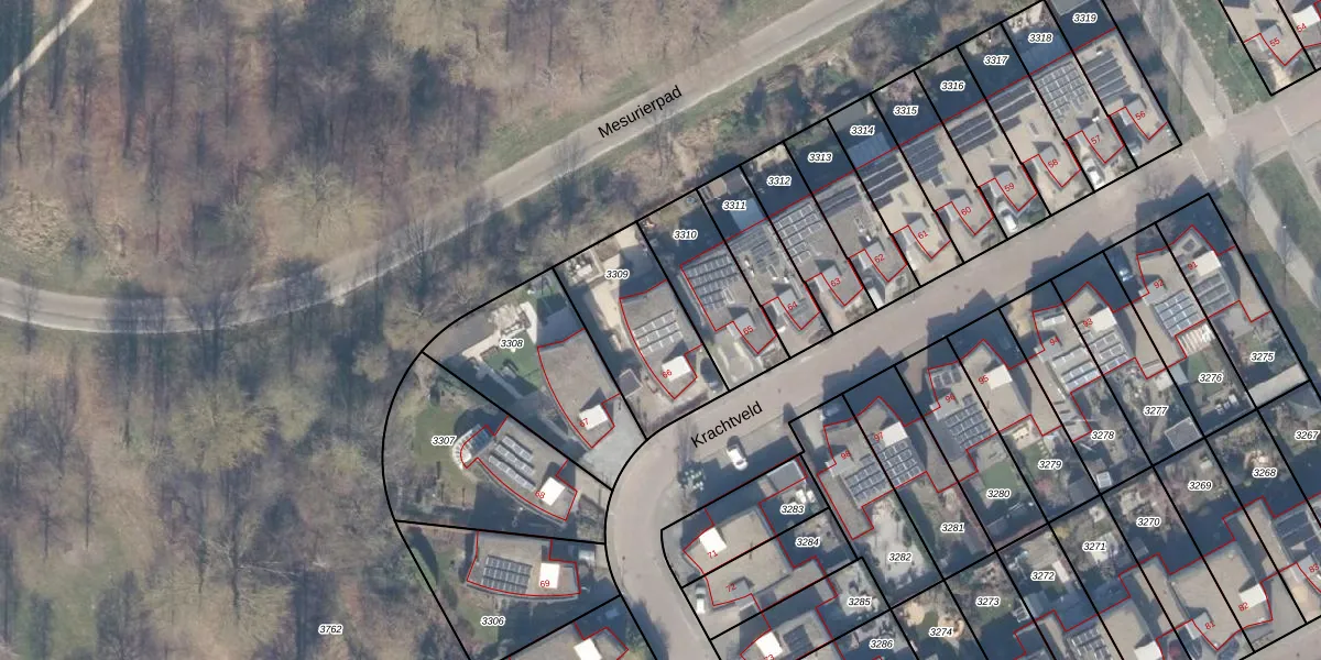 Het perceel waarop Krachtveld 66 staat heeft een oppervlakte van 426 m². Dit is een groot perceel. De perceeloppervlakte wordt geregistreerd door het Kadaster. Gedetailleerde informatie over de maten van dit perceel kunt u vinden in het rapport Kadastrale kaart met maatvoering van Krachtveld 66.