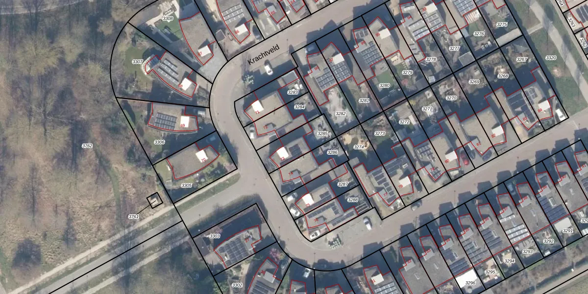 Het perceel waarop Krachtveld 73 staat heeft een oppervlakte van 237 m². Dit is een middelgroot perceel. De perceeloppervlakte wordt geregistreerd door het Kadaster. Gedetailleerde informatie over de maten van dit perceel kunt u vinden in het rapport Kadastrale kaart met maatvoering van Krachtveld 73.