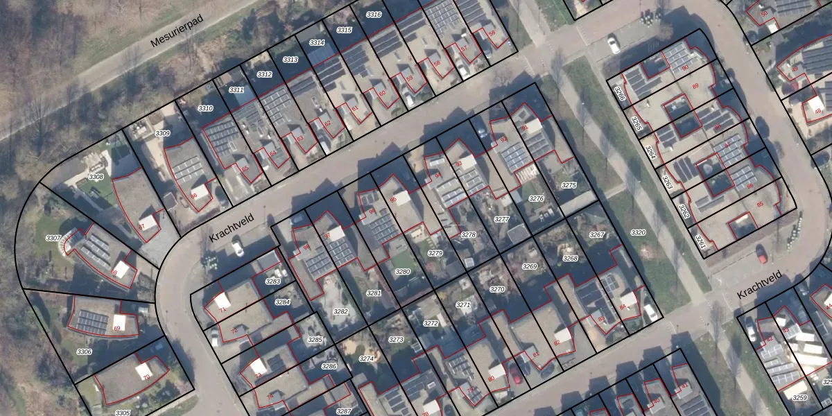 Het perceel waarop Krachtveld 95 staat heeft een oppervlakte van 290 m². Dit is een middelgroot perceel. De perceeloppervlakte wordt geregistreerd door het Kadaster. Gedetailleerde informatie over de maten van dit perceel kunt u vinden in het rapport Kadastrale kaart met maatvoering van Krachtveld 95.