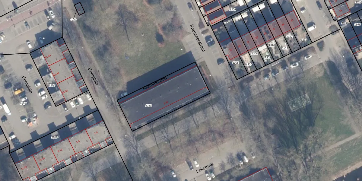 Het perceel waarop het adres ligt is AMR04-O-6230. De afkorting 'AMR04' staat voor kadastrale gemeente Almere. Het perceel is kleiner dan gemiddeld in Almere. Het perceel is 916 m² groot, terwijl het gemiddelde ligt op 3328,38 m². Het grootste perceel in de kadastrale gemeente is 32,12 km². Het kleinste perceel heeft een oppervlakte van 0 m². Op het perceel zijn 16 adressen aanwezig. De laatste wijziging in het de Basisregistratie Kadaster (BRK) was op 02-11-2006.