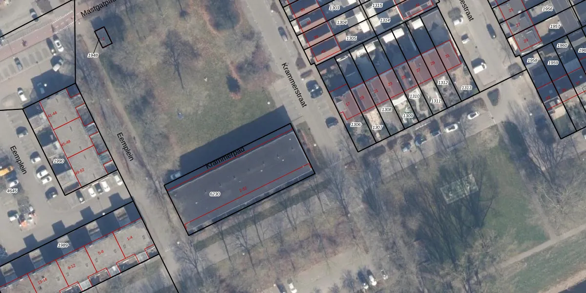 Het perceel waarop het adres ligt is AMR04-O-6230. De afkorting 'AMR04' staat voor kadastrale gemeente Almere. Het perceel is kleiner dan gemiddeld in Almere. Het perceel is 916 m² groot, terwijl het gemiddelde ligt op 3328,38 m². Het grootste perceel in de kadastrale gemeente is 32,12 km². Het kleinste perceel heeft een oppervlakte van 0 m². Op het perceel liggen in totaal 16 adressen. De laatste wijziging in het de Basisregistratie Kadaster (BRK) was op 02-11-2006.