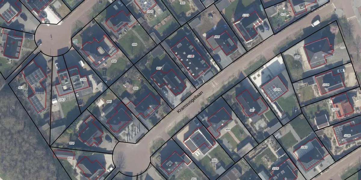 Het perceel waarop Kramsvogellaan 12 staat heeft een oppervlakte van 595 m². Dit is een groot perceel. De perceeloppervlakte wordt geregistreerd door het Kadaster. Gedetailleerde informatie over de maten van dit perceel kunt u vinden in het rapport Kadastrale kaart met maatvoering van Kramsvogellaan 12.