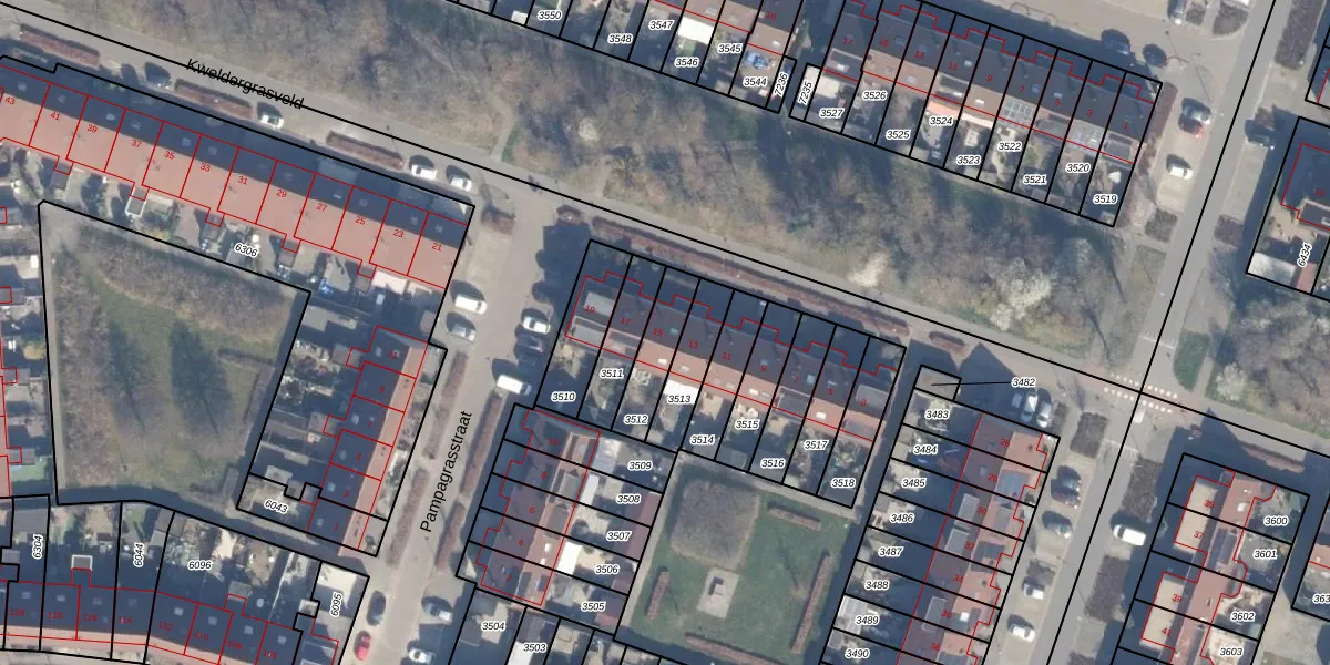 Kweldergrasveld 15 is gelegen op kadastraal perceel AMR04O3512. Deze kadastrale aanduiding is uniek en wordt gebruikt door het Kadaster om eigendomsrechten en andere zakelijke rechten vast te leggen. Het perceel maakt onderdeel uit van de kadastrale gemeente Almere.