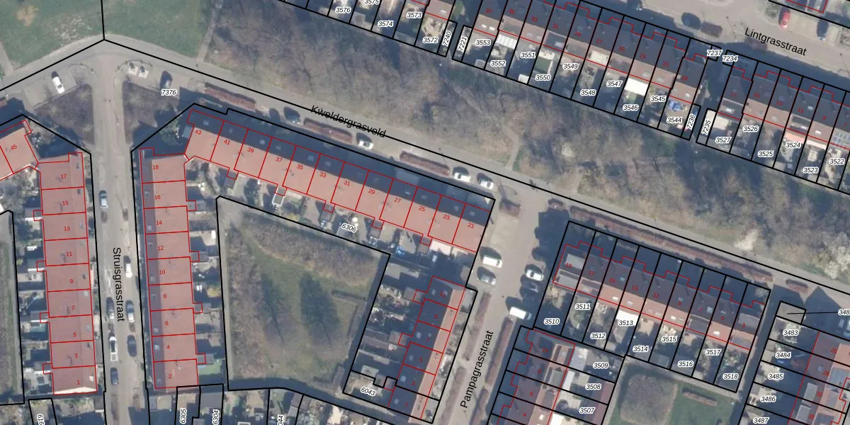 Het perceel waarop Kweldergrasveld 25 staat heeft een oppervlakte van 3551 m². Dit is een zeer groot perceel. De perceeloppervlakte wordt geregistreerd door het Kadaster. Gedetailleerde informatie over de maten van dit perceel kunt u vinden in het rapport Kadastrale kaart met maatvoering van Kweldergrasveld 25.
