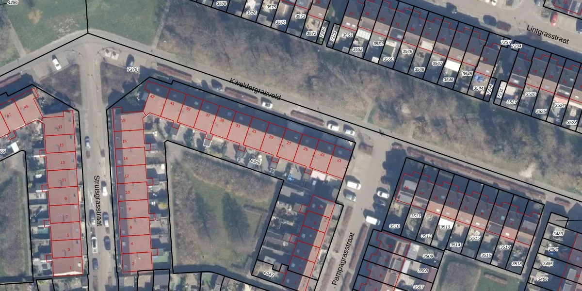 Het perceel waarop Kweldergrasveld 27 staat heeft een oppervlakte van 3551 m². Dit is een zeer groot perceel. De perceeloppervlakte wordt geregistreerd door het Kadaster. Gedetailleerde informatie over de maten van dit perceel kunt u vinden in het rapport Kadastrale kaart met maatvoering van Kweldergrasveld 27.