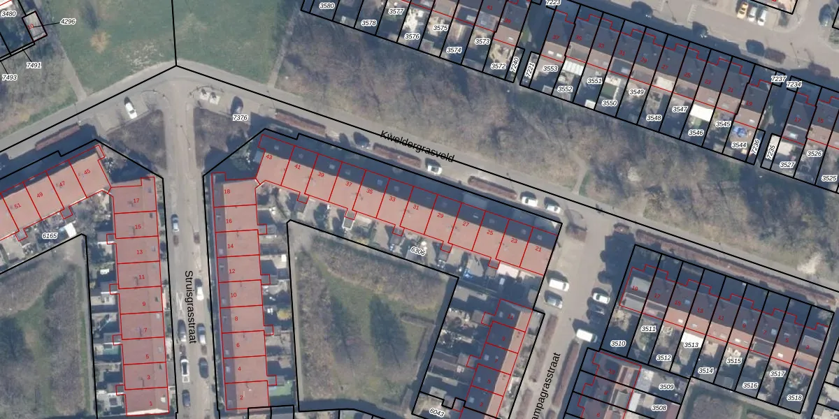 Het perceel waarop Kweldergrasveld 31 staat heeft een oppervlakte van 3551 m². Dit is een zeer groot perceel. De perceeloppervlakte wordt geregistreerd door het Kadaster. Gedetailleerde informatie over de maten van dit perceel kunt u vinden in het rapport Kadastrale kaart met maatvoering van Kweldergrasveld 31.