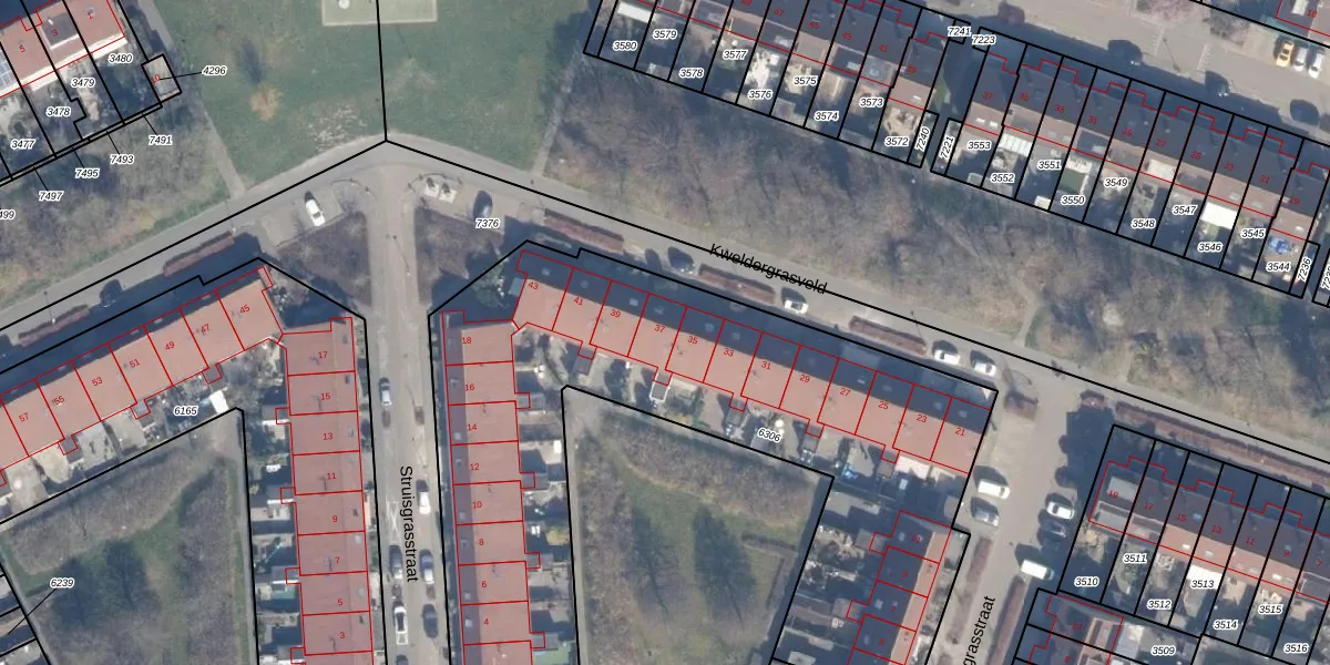 Het perceel waarop Kweldergrasveld 37 staat heeft een oppervlakte van 3551 m². Dit is een zeer groot perceel. De perceeloppervlakte wordt geregistreerd door het Kadaster. Gedetailleerde informatie over de maten van dit perceel kunt u vinden in het rapport Kadastrale kaart met maatvoering van Kweldergrasveld 37.