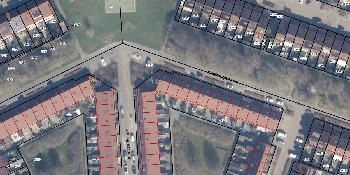 Het perceel waarop Kweldergrasveld 41 staat heeft een oppervlakte van 3551 m². Dit is een zeer groot perceel. De perceeloppervlakte wordt geregistreerd door het Kadaster. Gedetailleerde informatie over de maten van dit perceel kunt u vinden in het rapport Kadastrale kaart met maatvoering van Kweldergrasveld 41.