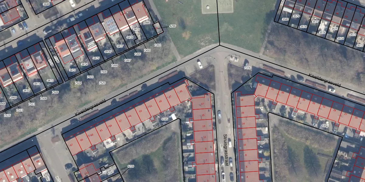 Het perceel waarop Kweldergrasveld 45 staat heeft een oppervlakte van 4028 m². Dit is een zeer groot perceel. De perceeloppervlakte wordt geregistreerd door het Kadaster. Gedetailleerde informatie over de maten van dit perceel kunt u vinden in het rapport Kadastrale kaart met maatvoering van Kweldergrasveld 45.