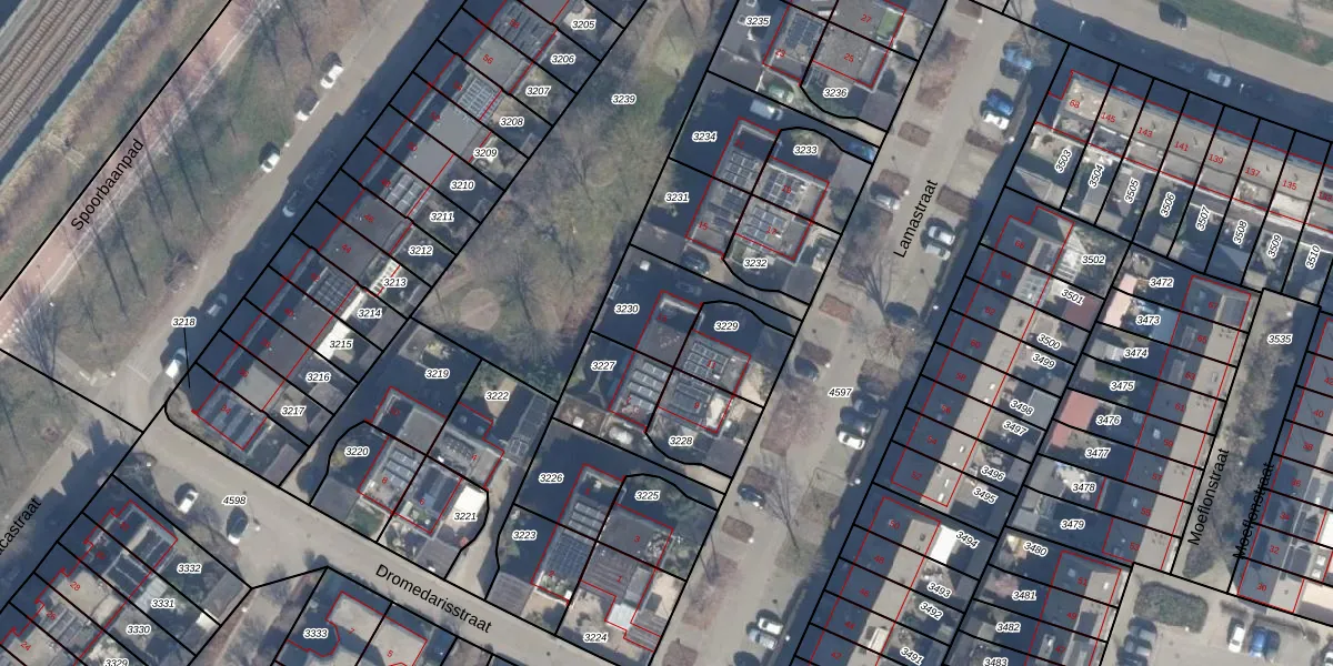 Gebruik de zoekbalk of klik op een perceel voor informatie over de adressen binnen dit perceel.