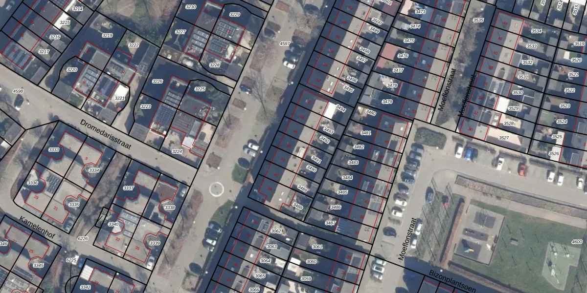 Gebruik de zoekbalk of klik op een perceel voor informatie over de adressen binnen dit perceel.