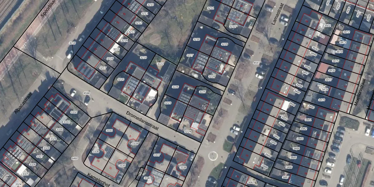 Lamastraat 5 is gelegen op kadastraal perceel AMR04N3226. Deze kadastrale aanduiding is uniek en wordt gebruikt door het Kadaster om eigendomsrechten en andere zakelijke rechten vast te leggen. Het perceel maakt onderdeel uit van de kadastrale gemeente Almere.