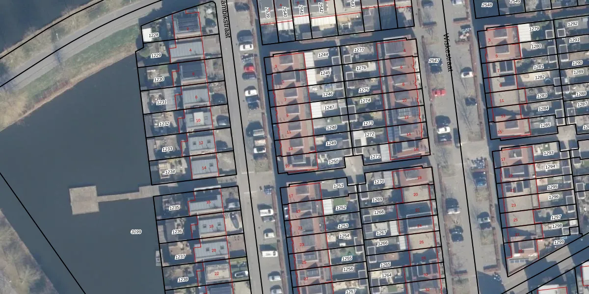 Gebruik de zoekbalk of klik op een perceel voor informatie over de adressen binnen dit perceel.