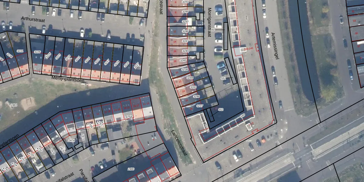 Lancelotstraat 24 is gelegen op kadastraal perceel AMR04W3243. Deze kadastrale aanduiding is uniek en wordt gebruikt door het Kadaster om eigendomsrechten en andere zakelijke rechten vast te leggen. Het perceel maakt onderdeel uit van de kadastrale gemeente Almere.